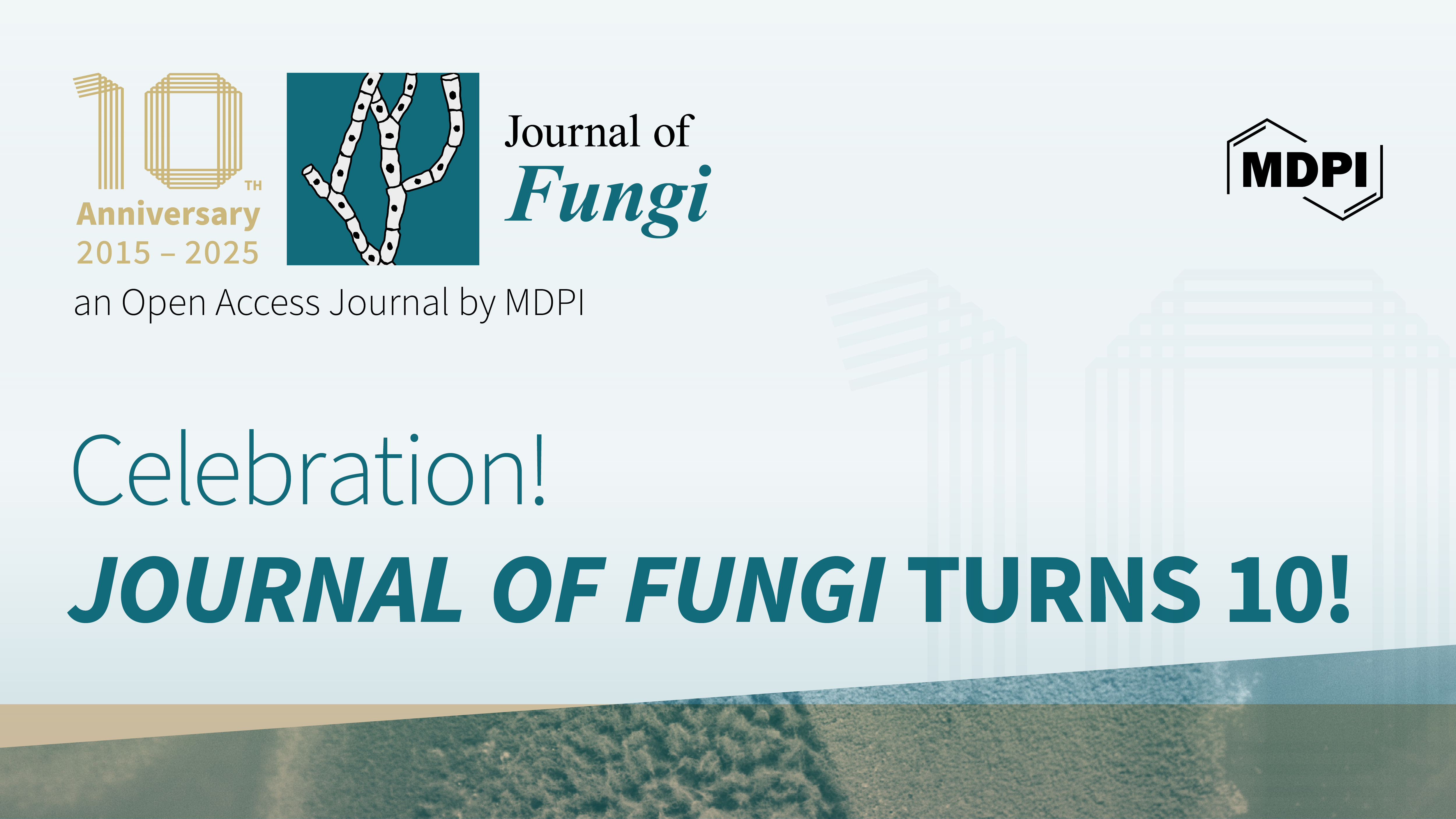The year 2025 marks the 10th anniversary of Journal of Fungi (JoF, ISSN: 2309-608X), a peer-reviewed open access journal on pathogenic fungi, fungal biology, and all other aspects of fungal research. With an Impact Factor of 4.2 and a CiteScore of 6.7, the journal is covered in Scopus, SCIE (Web of Science), PubMed, PMC, CAPlus/SciFinder, AGRIS, and other databases. The journal has published more than 5000 papers from more than 20000 authors. More than 6000 reviewers have reviewed papers submitted to the journal at least once. We equally value the contributions made by our editors, authors, and reviewers.