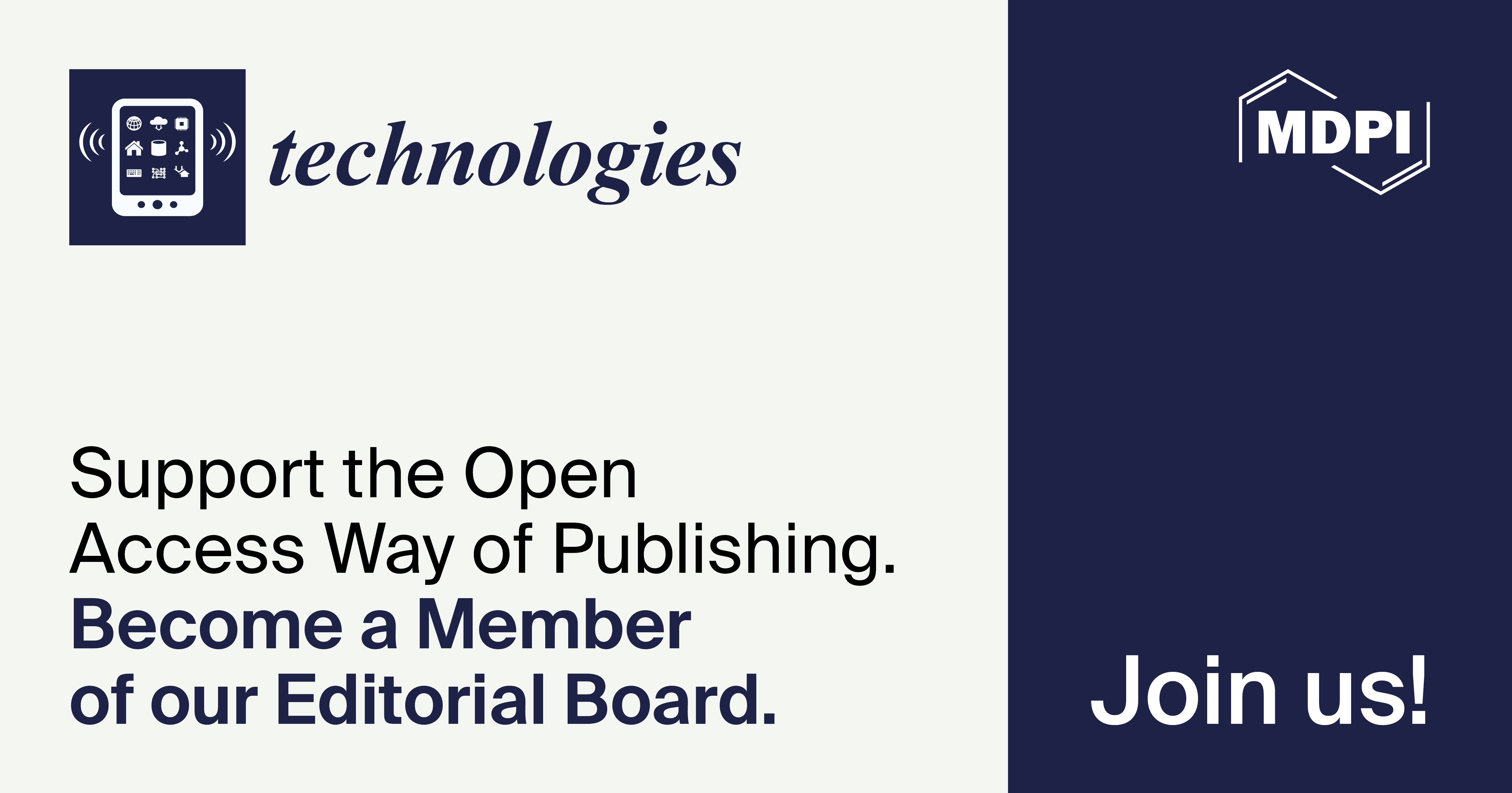 Technologies is an international, peer-reviewed, open access journal dedicated to exploring emerging scientific and technological trends. Established in 2013, it is indexed in prominent databases including ESCI-Web of Science, Scopus, and Inspec. The journal boasts an Impact Factor (IF) of 4.2, ranking 24th out of 181 in the “Engineering, Multidisciplinary” category (Q1). Additionally, it achieved a CiteScore of 8.5 in 2024, placing it 19th out of 160 in the “Computer Science (Miscellaneous)” category (Q1).