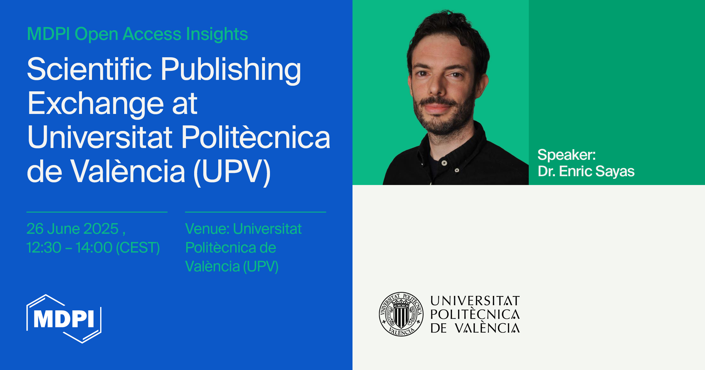 MDPI is excited to collaborate with the Universitat Politècnica de València (UPV), Spain, to host an exclusive scientific publishing workshop aimed at empowering researchers with the knowledge and tools needed for a successful scientific publishing. This workshop will cover the key aspects of MDPI’s open access publishing model, including editorial workflow, publication ethics, and the role of artificial intelligence in scholarly publishing. Participants will receive practical tips on improving their scientific writing and addressing reviewer comments, guided by experienced editors.