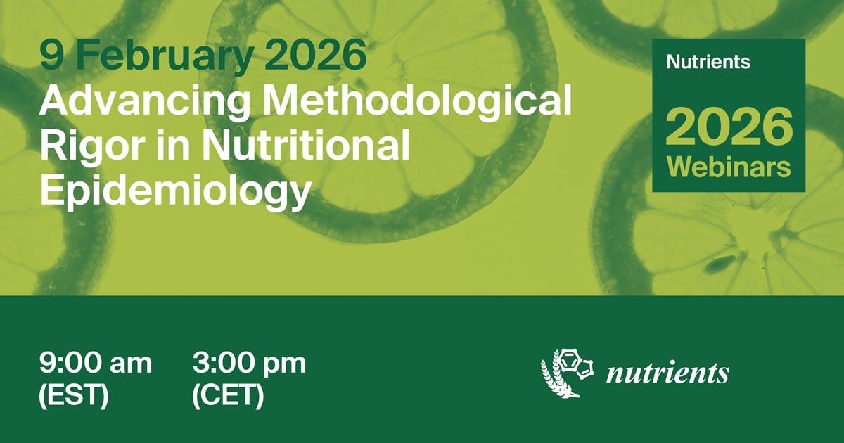 On 9 February 2026, MDPI and the journal Nutrients (ISSN: 2072-6643) will host a webinar titled “Advancing Methodological Rigor in Nutritional Epidemiology”.