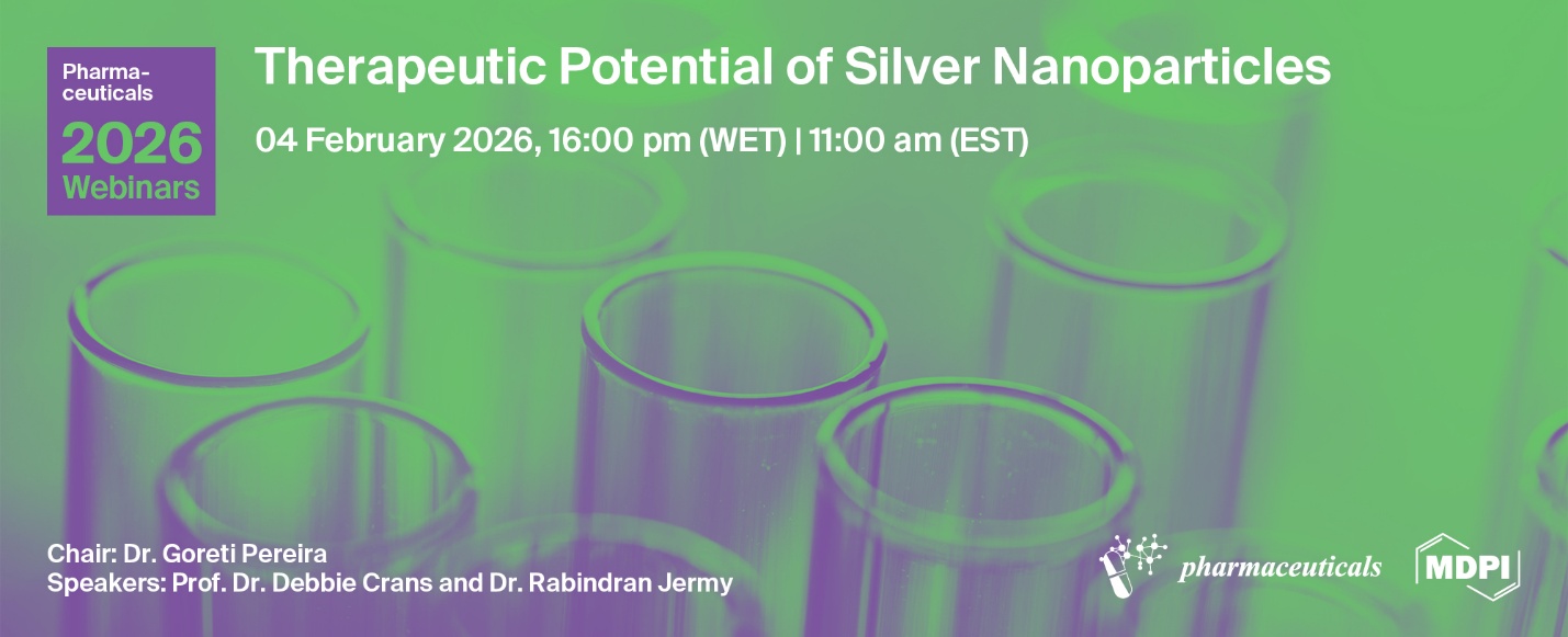 MDPI and Pharmaceuticals (ISSN: 1424-8247) are excited to invite you to a webinar focused on the emerging therapeutic potential of silver nanoparticles (AgNPs) and their applications in biomedicine, from antimicrobial action to tailored therapeutic strategies.