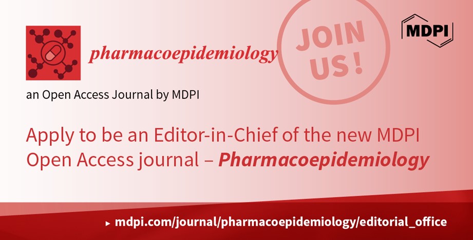 We are currently recruiting a founding Editor-in-Chief for our new journal, Pharmacoepidemiology (ISSN 2813-0618; https://www.mdpi.com/journal/pharmacoepidemiology), which is an international, peer-reviewed, open access journal that publishes original articles, critical reviews, and short communications on high-quality epidemiological, clinical research across the fields of clinical pharmacology and epidemiology. The multidisciplinary journal welcomes manuscripts which cover a wide range of aspects involving pharmacoepidemiology and its development.