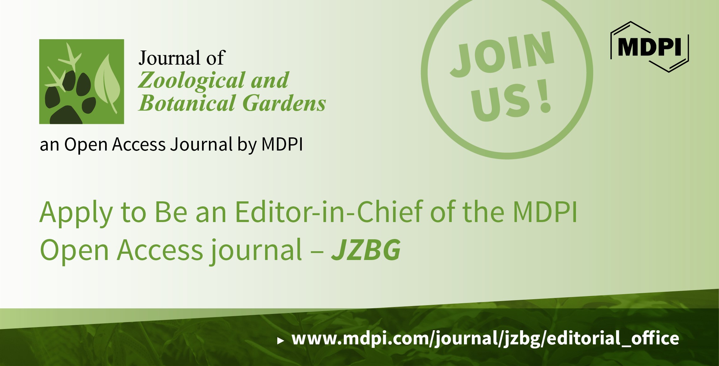 We are currently recruiting a founding Editor-in-Chief for the Journal of Zoological and Botanical Gardens (JZBG, ISSN: 2673-5636), which is a new, open access journal published online by MDPI. JZBG draws together expertise from biology, conservation, social sciences, and the humanities to explore pure and applied research questions concerning the management, conservation, and sustainability of wildlife.