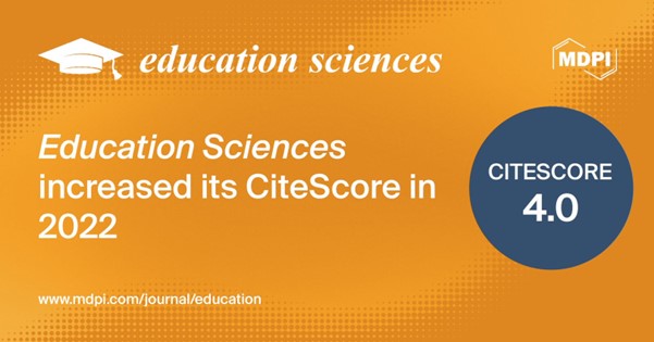 We are pleased to inform you that Education Sciences (ISSN: 2227-7102) has received an updated CiteScore of 4.0, an increase of 38% compared with the 2021 metric. The 2022 CiteScore™ was released recently, making an assessment of the scientific influence of journals in the 2019 to 2022 period.