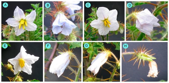 - Saha, M.; Dutta, B.K. Reproductive biology of Solanum sisymbriifolium Lamk. (Solanaceae) in Tripura, North-east India. Int. J. Plant Reprod. Biol. 2017, 9, 59–62. [Google Scholar]