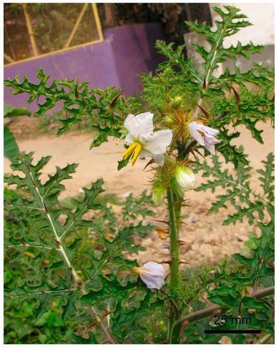 - Gupta, V.K.; Simlai, A.; Tiwari, M.; Bhattacharya, K.; Roy, A. Phytochemical contents, antimicrobial and antioxidative activities of Solanum sisymbriifolium. J. Appl. Pharm. Sci. 2014, 4, 75–80. [Google Scholar] [CrossRef]