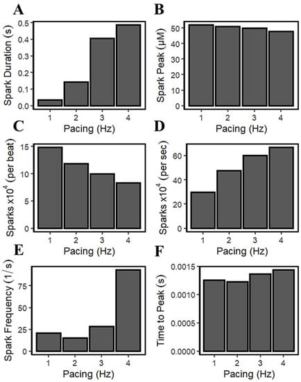 4.6. Calcium Spark Characteristics Change with Pacing