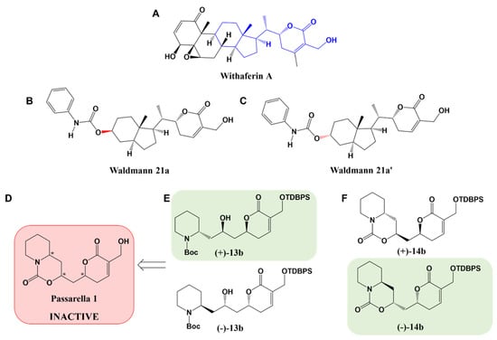 - Bonandi, E.; Mori, M.; Infante, P.; Basili, I.; Di Marcotullio, L.; Calcaterra, A.; Catti, F.; Botta, B.; Passarella, D. Design and Synthesis of New Withaferin A Inspired Hedgehog Pathway Inhibitors. Chem.—Eur. J. 2021, 27, 8350–8357. [Google Scholar] [CrossRef]