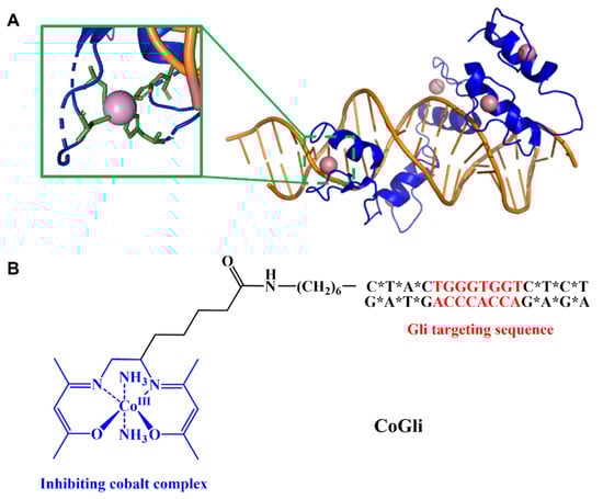 - Brue, C.R.; Dukes, M.W.; Masotti, M.; Holmgren, R.; Meade, T.J. Functional Disruption of Gli1-DNA Recognition via a Cobalt(III) Complex. ChemMedChem 2022, 17, e202200025. [Google Scholar] [CrossRef]