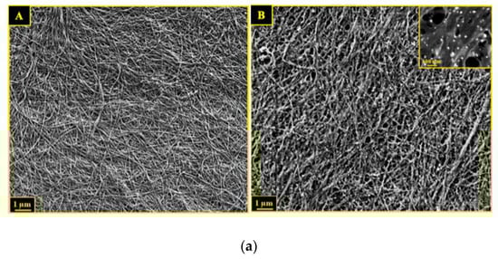 Modified BNC prepared by agitation method for incorporation of nanoparticles. (a) (A) Field Emission Scanning Electron Microscopy (FE-SEM) images of transparent nanopaper. (B) FE-SEM images of ESNP; (b) Schematic representation for the fabrication of ESNPs. Adapted with permission from [94]. Copyright 2015. Reproduced with permission from Elsevier.