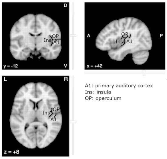 - Bamiou, D.E.; Musiek, F.E.; Luxon, L.M. The insula (Island of Reil) and its role in auditory processing. Literature review. Brain Res. Brain Res. Rev. 2003, 42, 143–154. [Google Scholar] [CrossRef]