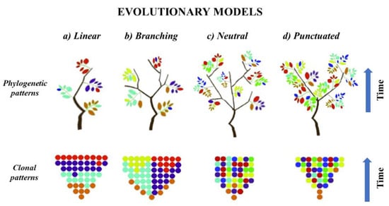 - Davis, A.; Gao, R.; Navin, N. Tumor evolution: Linear, branching, neutral or punctuated? Biochim. Biophys. Acta 2017, 1867, 151–161. [Google Scholar] [CrossRef]