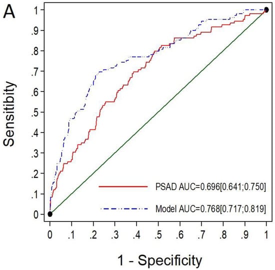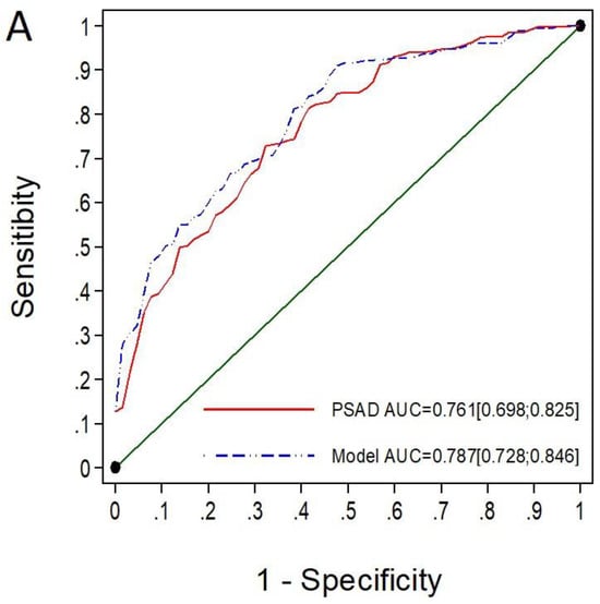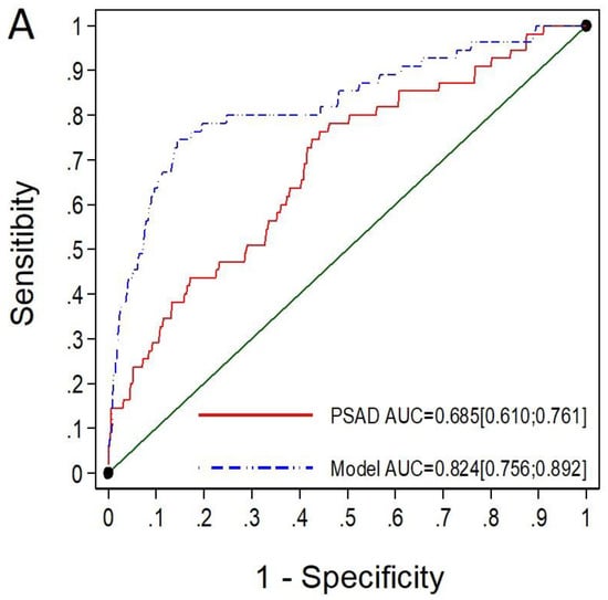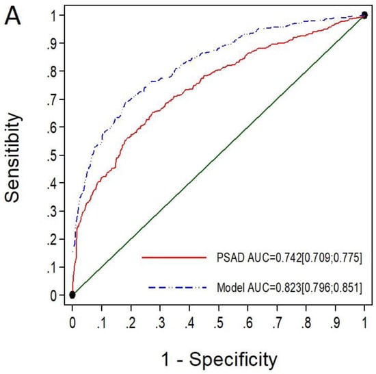 3.2. Performance of mPSAD and MRI-PMbdex in the Entire Population