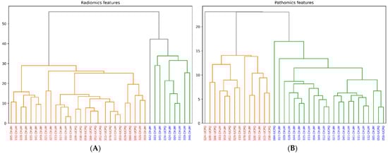 Hierarchical clustering analysis using. (A) pathomics features; (B) radiomics features.