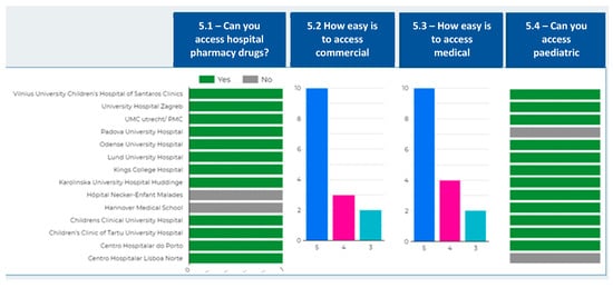 Despite this, the results of the survey show that the accessibility to medicines seems to be mostly fulfilled. The different centres/countries have found standardized procedures that make it easier for families to obtain these drugs. In addition, there is also a high level of satisfaction with access to drugs for hospital use, paediatric doses, and medical equipment. The finding that paediatric doses are resolved in most of the centres provides sufficient arguments for the two centres in our study that lack this service to demand its implementation, taking as a reference the models already implemented and with a good level of acceptance.