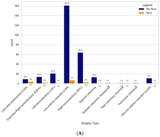 Postoperative Ileus by Surgery Type (A) and Surgical Approach (B).