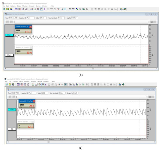 However, there are some particular aspects that need to be considered in this study. laser Doppler flowmetry (LDF) allows for measurements of microcirculation in the tissues of humans and animals and records blood flow in about 1 mm3 of tissue but measurements of microcirculation can be made with low reliability. The main disadvantage of LDF is that it does not accurately measure blood flow, so it cannot be used to calculate absolute blood flow (e.g., in units of mL/min/100 g tissue); instead, LDF produces only relative blood flow [4,33].