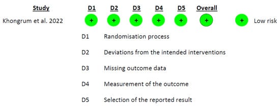 Graph of RoB 2.0, showing the analysis of the risk of bias for the parallel intention to treat studies included in the systematic review [].