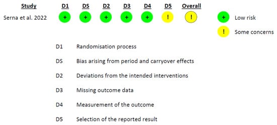 Graph of RoB 2.0, showing the analysis of the risk of bias for the crossover per protocol studies included in the systematic review [].