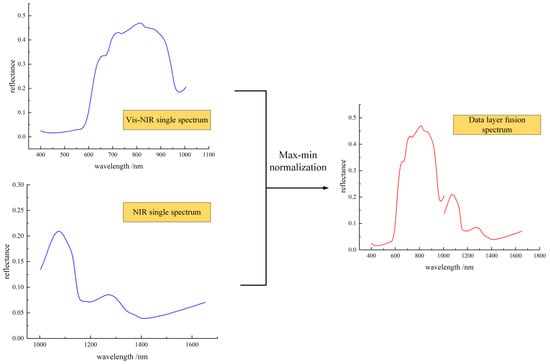 This paper discusses the fusion of raw data layer data, which only requires the direct concatenation and merging of data from samples of different testing instruments. Based on the fused data, the physical and chemical properties of the samples can be analyzed to obtain more analytical results than a single spectroscopic technique. In this study, 354 variables were generated by merging data from Vis-NIR and NIR spectroscopic instruments, which contributed 116 and 238 variables, respectively [].