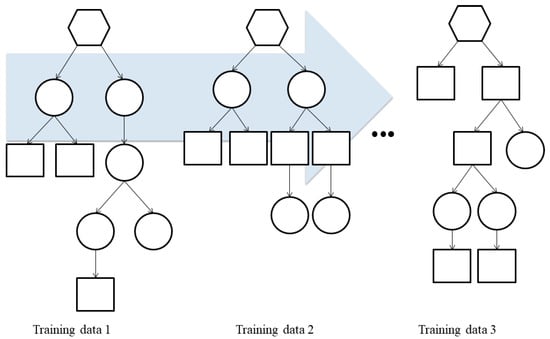 RF can be free from overfitting theoretically, and is not affected by noise or outliers much []. Moreover, it can generate high accuracy results by reducing generalization errors []. However, RF is more likely to have an elbow point, which means a steep drop in slope with more trees. Moreover, there is a higher probability that each tree will be more complex when an unimportant explanatory variable is selected. Therefore, this study improved the accuracy of the model by considering the number of mtry, the number of candidate explanatory variables, in advance.