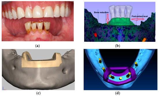 - Alzoubi, F.; Massoomi, N.; Nattestad, A. Bone Reduction to Facilitate Immediate Implant Placement and Loading Using CAD/CAM Surgical Guides for Patients With Terminal Dentition. J. Oral Implantol. 2016, 42, 406–410. [Google Scholar] [CrossRef]