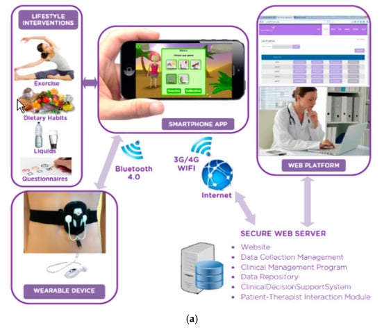The information provided in stage 1 was used to developed an early, operational prototype of the intervention. This system was comprised of a vaginal and abdominal biofeedback device, a serious gaming application for a smartphone, a therapist–patient web-based communication platform and a personalized training schedule. Figure 1 shows the components of the intervention and their integration.