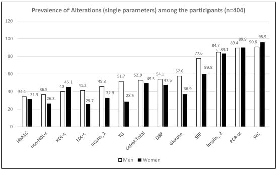 Prevalence of alterations in single parameters used in the diagnosis of metabolic risk.
