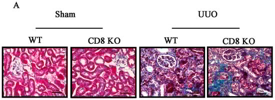 2.1. CD8 Deficiency Promotes Renal Fibrosis in Unilateral Ureteric Obstruction (UUO) Mouse Model