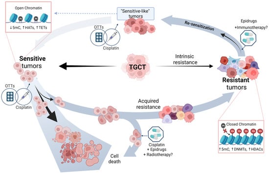 In this review, we summarize current genomic and epigenomic features associated with chemoresponse in TGCT patients and present an overview of the independent molecular profiles of sensitive and resistant tumors. Additionally, we discuss recent advances in research on new therapies, with special attention to epidrugs as a promising alternative to enhance cisplatin response by resensitizing resistant tumors.