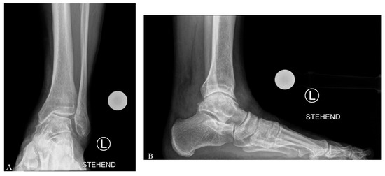 - Hintermann, B.; Barg, A.; Knupp, M. Corrective supramalleolar osteotomy for malunited pronation-external rotation fractures of the ankle. Bone Jt. Surgery. Br. 2011, 93, 1367–1372. [Google Scholar] [CrossRef][Green Version]