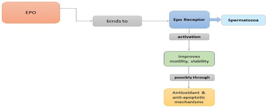 - Asimakopoulos, B.; Tiptiri-Kourpeti, A.; Metalinou, C. Erythropoitein Increases In vitro Motility and vitality of human spermatozoa. In Vivo 2021, 35, 2669–2673. [Google Scholar] [CrossRef]