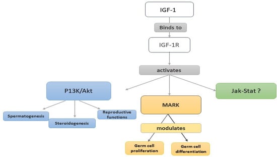 - Naz, R.K.; Padman, P. Identification of insulin-like growth factor (IGF)-1 receptor in human sperm cell. Arch. Androl. 1999, 43, 153–159. [Google Scholar] [CrossRef]