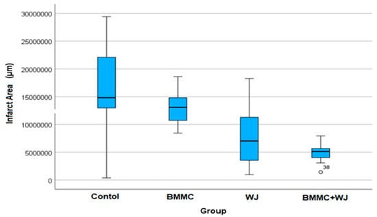 Inter-group analysis of infarct area (µm2) after 30 days post-infarction.