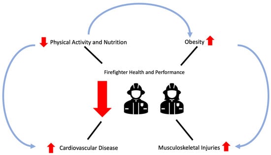 Mechanisms leading to decreased firefighter health and performance are low levels of physical activity, poor nutrition, obesity, high rates of cardiovascular disease, and injuries on the job. Improving physical activity and nutrition can decrease obesity and lower cardiovascular disease risk, in turn improving performance. Poor body composition is a risk factor for musculoskeletal injury. By improving body composition, occupational performance and health may improve.