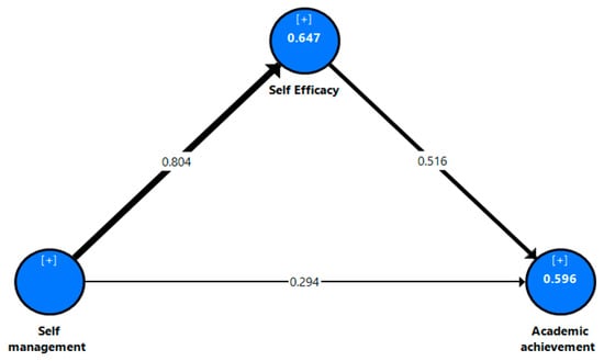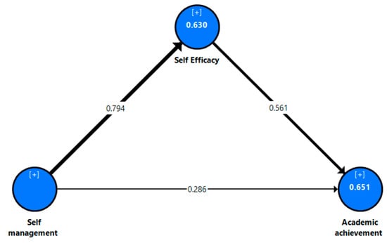 Moreover, self-management was also found to have a key impact on self-efficacy. According to our findings, the degree of self-efficacy determines a high percentage of the variation in the self-efficacy criteria, which is consistent with other studies (e.g., ; ). Self-management is a broad concept that encompasses qualities such as self-efficacy. Self-management is widely recognized as one of the required abilities that drive students toward becoming more self-determined youths who can responsibly and proactively manage the elements of their lives, both in and out of educational contexts, according to (). As a result, our study’s perspective is that students who can create objectives and employ various self-management tactics have better self-efficacy.
