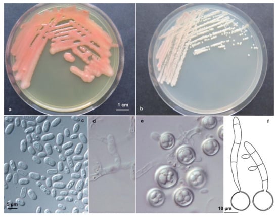 - Yurkov, M.; Kachalkin, A.V.; Daniel, H.M.; Groenewald, M.; Libkind, D.; de Garcia, V.; Zalar, P.; Gouliamova, D.E.; Boekhout, T.; Begerow, D. Two yeast species Cystobasidium psychroaquaticum f.a. sp. nov. and Cystobasidium rietchieii f.a. sp. nov. isolated from natural environments, and the transfer of Rhodotorula minuta clade members to the genus Cystobasidium. Antonie Leeuwenhoek 2015, 107, 173–185. [Google Scholar] [CrossRef] [PubMed]