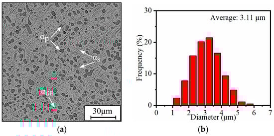 The properties of Ti alloys are bound with the microstructural features [,,], e.g., the content of the α phase, the size of the β grain, the diameter of the αp grain and the thickness of the αs phase. In this work, the classical Hall–Petch formula is employed to express YS or UTS [,]: