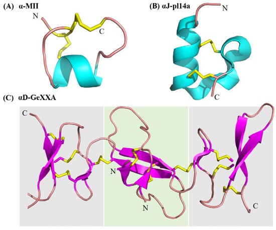 - McIntosh, J.M.; Santos, A.D.; Olivera, B.M. Conus peptides targeted to specific nicotinic acetylcholine receptor subtypes. Annu. Rev. Biochem. 1999, 68, 59–88. [Google Scholar] [CrossRef] [PubMed]