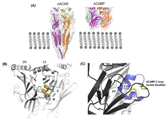 - Shahsavar, A.; Gajhede, M.; Kastrup, J.S.; Balle, T. Structural studies of nicotinic acetylcholine receptors: Using acetylcholine-binding protein as a structural surrogate. Basic Clin. Pharmacol. Toxicol. 2016. [Google Scholar] [CrossRef] [PubMed]