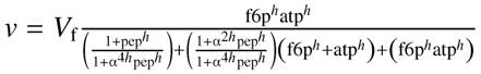 | PFK | allosteric modifier: ⊝PEP bi-substrate, irreversible Hill [48] | Vf | 0.4435 ±0.0001 | mM |