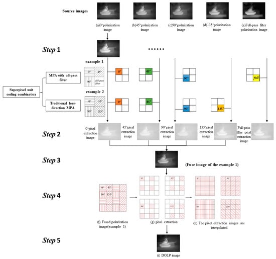 To obtain the DOLP image of the MPA with a specific transmittance and coding combination, five steps are needed (Figure 4):