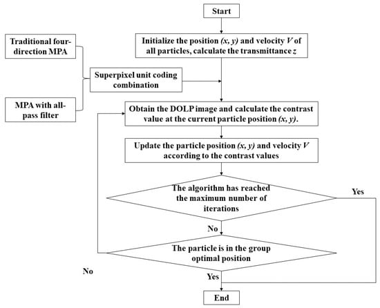 The flow chart of the particle swarm optimization algorithm is shown in Figure 5. The primary steps for designing the coding combination of superpixel units in the MPA using the particle swarm optimization algorithm are as follows: