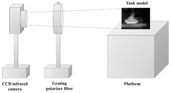 In this paper, a time-sharing, long-wave infrared polarization-imaging system was designed to collect configuration images with different polarization angles, as depicted in Figure 6. In the imaging system, the detector was a CCD infrared camera (384 × 288 pixels; XI370-F190M; Chengdu Jinglin Company; Chengdu, China). The detector’s spectral response band covered 8~14 μm, and it employed a USB data interface to fulfill the demands of real-time image acquisition and data transmission.