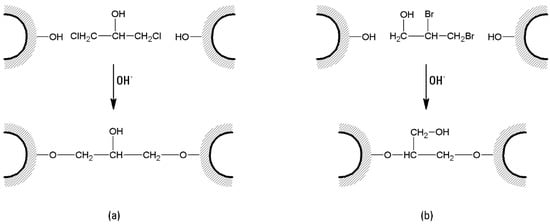 Cross-linking of agarose beads with 1,3-dichloro-2-propanol (DCP) (a) and 2,3-dibromopropanol (b).