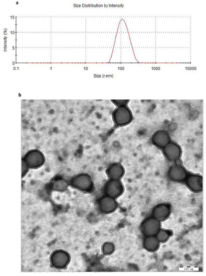3.3.1. Particle Size Measurements and Morphology of the Nanoparticles