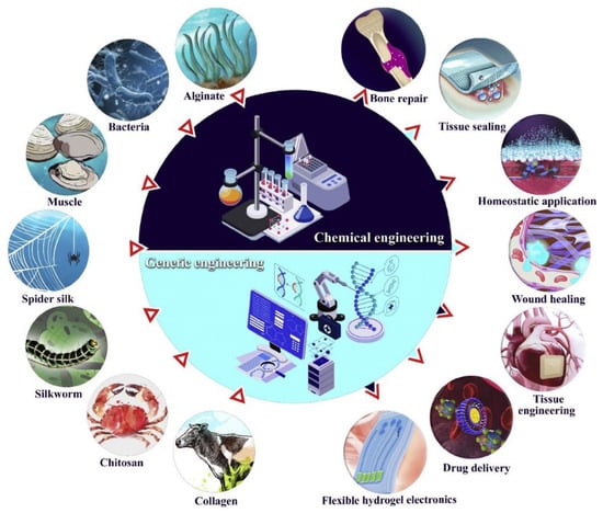 Bioadhesives with wide-ranging biomedical applications. Reproduced with permission from Elsevier, Reference [].