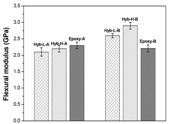 Flexural modulus of hybrid and non-hybrid epoxy systems.