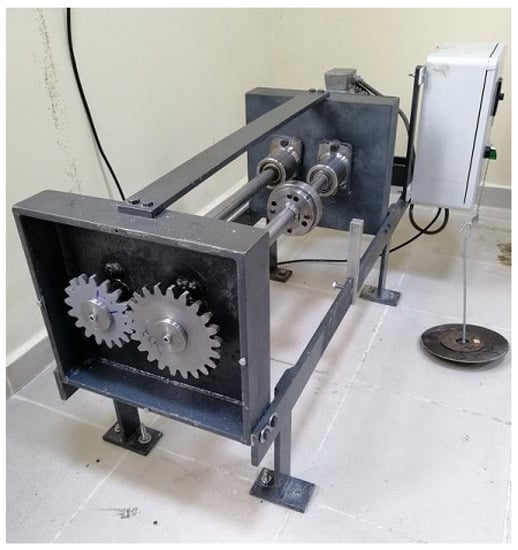To observe the wear on the gears, wear tests were carried out with the FZG closed circuit wear test device (Figure 5). In the tests, a 1.5 Nm load was applied to the gear pair and the system was rotated at 900 rpm. The gears were rotated for a total of 105 rotations to determine the theoretical wear. After every 104 revolutions of the pinion gear, the gears were removed, cleaned, and weighed. Wear amount weighing of 10−4 gr. was performed with precision scales. At the end of the tests, the total wear amount was determined and the wear coefficient to be used in the theoretical equation for each gear was determined (k). To determine the service life of the test gears, they were run at the same load and rotational speeds until the gears were damaged. In order to observe the wear in polymeric gears, a St 37-2 steel gear was used as the driven gear. The characteristics of the gears used in the tests are given in Table 3.
