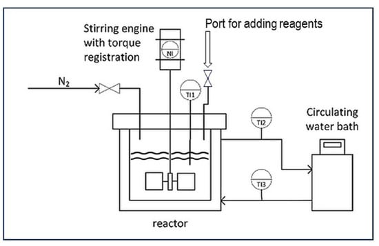 There are several other flow reactors that have been proven able to handle high-viscosity fluids. In our laboratory, a tube reactor with static mixing elements has been demonstrated to be suitable for hydroxypropylation of gelatinized starch [], a concept that has been patented []. This reactor shows nearly perfect plug flow. There are several more literature sources that report the use of extruders for starch grafting. The example of a bench-scale extruder in the work of de Graaf in our laboratory was mentioned before []. Other examples are in the work of Willet and Finkenstedt who performed graft copolymerization with acrylamide in a bench-scale extruder [], Kugler et al. who grafted several acrylic monomers in a lab-scale extruder [], and Jiang et al. [] who grafted acrylamide in a combination system of a twin screw and a single extruder, also at bench scale. Jiang et al. reported that their system is able to handle very high viscosity, but no data are given. Another aspect of polymerization reactions with acrylic monomers is that they are quite exothermic, for example, in the reaction enthalpy of acrylic acid polymerization, ΔH = −77 kJ/mol []. Therefore, any conceptual reactor or process at a larger scale needs to have the capacity to remove a substantial amount of heat, while a high viscosity does not ease this. The extruders and the static mixer reactors mentioned are promising in this respect, but they have not yet been effectively demonstrated at larger scale for starch grafting.